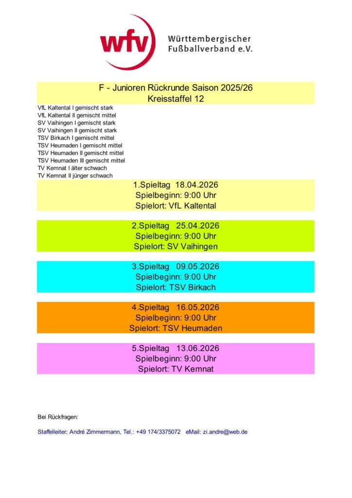 Tabelle & Spielplan F-Junioren Die drei Teams des TSV Heumaden spielen in der Rückrunde in derKreisstaffel 12.